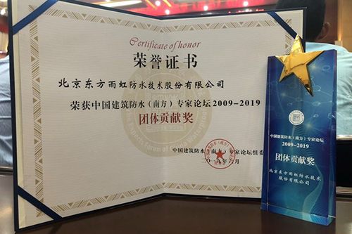 6月29日,2019年第六屆中國建筑防水(南方)專家論壇在湖北工業(yè)大學(xué)召開。本次論壇由中國建筑防水協(xié)會、深圳市防水行業(yè)協(xié)會、湖北工業(yè)大學(xué)等聯(lián)合主辦,東方雨虹作為協(xié)辦單位受邀出席,并獲得由組委會頒發(fā)的“中國建筑防水(南方)專家論壇2009-2019團(tuán)體貢獻(xiàn)獎”。同時(shí),東方雨虹董事長李衛(wèi)國先生榮獲湖北工業(yè)大學(xué)防水材料與工程學(xué)科建設(shè)與咨詢委員會頒發(fā)的“防水材料與工程”學(xué)科專業(yè)貢獻(xiàn)獎。