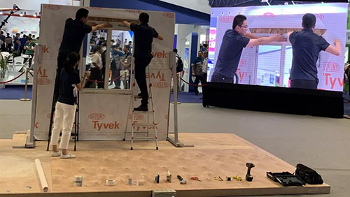 東方雨虹以觸摸屏共享案例,展示產品系統50余個、施工服務13個、工程案例近200個。同期,東方雨虹多位技術人員參與研討,從屋面系統、防水密封系統以及施工等領域進行深刻的技術與思想碰撞。   在現場進行的Tyvek?特衛強防水透汽膜施工演示是防水展中六場大型施工演示第一場,吸引了不少人的目光。