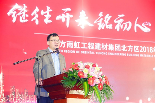 會(huì)上,東方雨虹工建集團(tuán)北方區(qū)董事長(zhǎng)張洪濤首先做工作報(bào)告。以“穩(wěn)健經(jīng)營強(qiáng)創(chuàng)新,凝心聚力謀發(fā)展”為主題,總結(jié)2018年經(jīng)營成果,部署2019年工作重點(diǎn)。