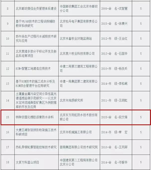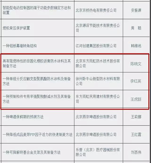 其中北京東方雨虹防水技術(shù)股份有限公司段文鋒工作室的“特種非固化橡膠瀝青防水涂料”獲得創(chuàng)新項目助推;北京東方雨虹防水技術(shù)有限公司的“具有阻燃特性的非固化橡膠瀝青防水涂料及其制備方法”、東方雨虹民用建材有限責(zé)任公司的“一種預(yù)制構(gòu)件專用早強(qiáng)聚羧酸減水劑及其制備方法”、徐州臥牛山新型防水材料有限公司的“一種單組分反應(yīng)觸變型聚氨酯防水涂料”獲得創(chuàng)新發(fā)明專利助推。