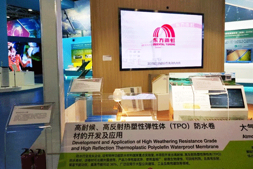 東方雨虹作為堅持自主創新的高新技術企業,將自主創新理念貫穿于產品研發、生產及工程實踐中。由東方雨虹開發并成功應用的高耐候、高反射熱塑性彈性體(TPO)防水卷材位于成果展中的節能環保展區。這款產品力學性能優異,使用溫域廣、耐微生物侵蝕、可回收利用,且具有反射、保溫節能功效,最高節能超過30%,已廣泛應用于大型公共建筑、工業及商用建筑等領域。   東方雨虹以“科技創新,產業報國”為指導思想,每年堅持投入營收的4%(2017年研發投入為4.65億元)用于創新和技術服務。堅持以國內領先、國際先進的創新成果引領行業的發展方向,推動行業的進步,增強公司和行業的可持續發展能力。