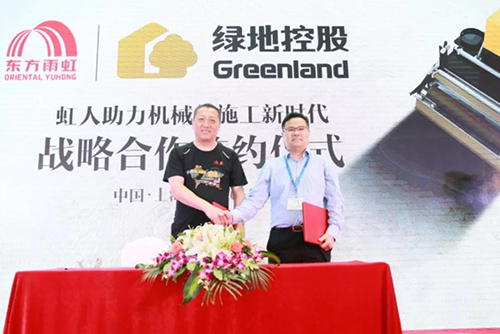 5月28日下午,東方雨虹“智能制造:虹人助力機(jī)械化施工新時(shí)代”發(fā)布會在上海舉行。發(fā)布會中,東方雨虹先后與綠地集團(tuán)、正榮集團(tuán)舉行戰(zhàn)略合作簽約儀式。