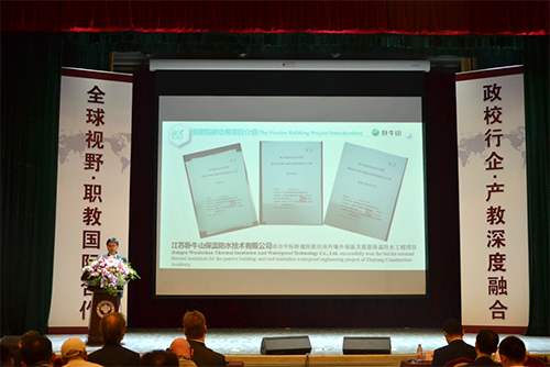 4月19日,由浙江建設(shè)職業(yè)技術(shù)學(xué)院、德國(guó)薩克森州/薩克斯—安哈特州建筑工業(yè)行會(huì)(BISA)、薩克森州建筑業(yè)促進(jìn)協(xié)會(huì)(BFW)、德國(guó)國(guó)際合作機(jī)構(gòu)(GIZ)聯(lián)合舉辦的“中德綠色建筑產(chǎn)教對(duì)接會(huì)”在杭州召開。江蘇臥牛山作為被動(dòng)房示范項(xiàng)目中外墻保溫供材與施工方應(yīng)邀出席,江蘇臥牛山副總經(jīng)理兼總工程師熊少波就“低能耗建筑物保溫領(lǐng)域的挑戰(zhàn)和解決方案”作主題發(fā)言。
