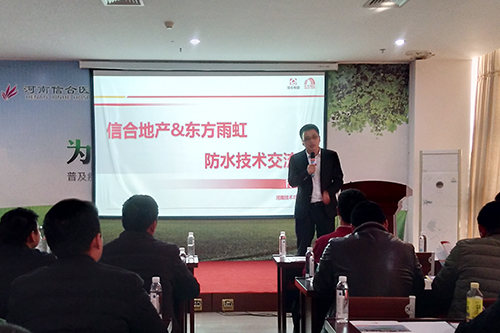 段煉先生介紹了參會(huì)主要代表,并對(duì)東方雨虹技術(shù)團(tuán)隊(duì)到來表示感謝。牛星先生對(duì)信合地產(chǎn)的發(fā)展表示祝賀,同時(shí)期待雙方能達(dá)成更廣泛的合作。孫新磊先生通過技術(shù)講解對(duì)建筑防水部位做系統(tǒng)性分析,并就項(xiàng)目中遇到的實(shí)際問題,進(jìn)行現(xiàn)場答疑,專業(yè)化的講述得到了與會(huì)人員的贊賞。