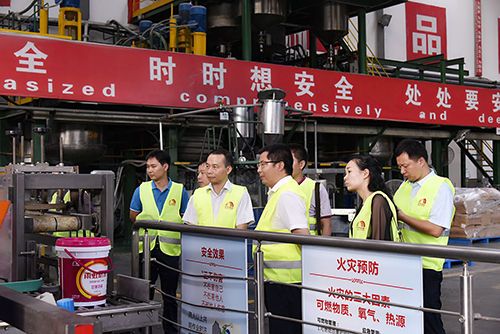 向鋒向考察團(tuán)匯報(bào)了東方雨虹整體經(jīng)營(yíng)情況、生產(chǎn)規(guī)模以及企業(yè)優(yōu)勢(shì)等,并陪同考察團(tuán)參觀水性涂料車(chē)間、高分子車(chē)間、瀝青卷材車(chē)間和外加劑車(chē)間,同時(shí)現(xiàn)場(chǎng)介紹各車(chē)間產(chǎn)品的生產(chǎn)工藝、產(chǎn)品優(yōu)勢(shì)及重大工程應(yīng)用情況。 熊瑞光表示,東方雨虹的工藝裝備先進(jìn),廠區(qū)環(huán)境綠色環(huán)保,生產(chǎn)規(guī)模具有優(yōu)勢(shì),希望東方雨虹到廣西投資建廠,共謀發(fā)展。