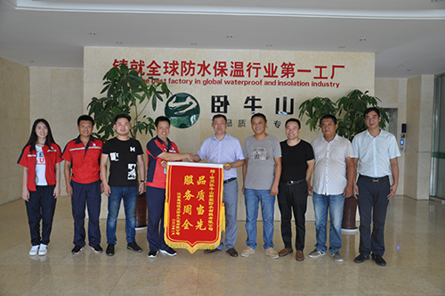 8月20日,江蘇鹽城恒成防水工程有限公司總經(jīng)理黃貴江手持“品質(zhì)當(dāng)先 服務(wù)周全”的錦旗,前往徐州臥牛山新型防水材料有限公司,表達(dá)對徐州臥牛山優(yōu)質(zhì)產(chǎn)品、優(yōu)質(zhì)服務(wù)的真摯謝意。