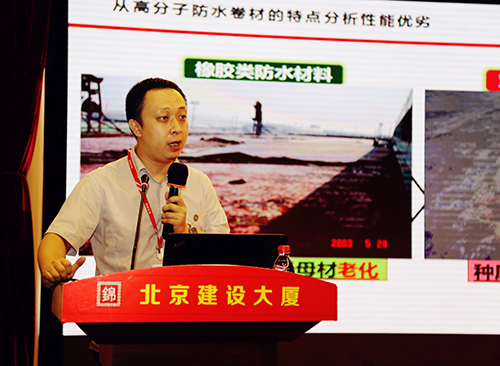 在宣講過程中,胡京波向在座專家及業內同仁分析了TPO防水卷材在現澆綜合管廊的應用優勢。他表示TPO的橡膠特性使其具有超長的耐久性,同時還具備耐酸堿鹽等化學腐蝕性,可以使用在特別環境中。短暫時間里的細致講解得到了現場在座業內人士的熱烈掌聲。