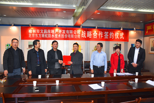 近日,東方雨虹與榆林市文昌集團(tuán)簽訂了集團(tuán)戰(zhàn)略合作協(xié)議。東方雨虹工程渠道西北事業(yè)部總經(jīng)理?xiàng)詈C鳌㈥兾魇】偨?jīng)理劉彬,文昌集團(tuán)副總經(jīng)理張東亮、副總經(jīng)理劉銳、總工程師劉志雄、采購(gòu)部總經(jīng)理王二虎共同出席了本次簽約儀式。 榆林市文昌集團(tuán)成立于2000年,下設(shè)建筑公司、房地產(chǎn)開(kāi)發(fā)公司、物業(yè)公司等10個(gè)子公司,是集建筑施工、安裝、房地產(chǎn)開(kāi)發(fā)、裝修裝飾和商貿(mào)為一體的綜合性企業(yè)集團(tuán)。 東方雨虹憑借強(qiáng)大的生產(chǎn)能力、完善的防水產(chǎn)品體系和專業(yè)的服務(wù)團(tuán)隊(duì)贏得了文昌集團(tuán)的認(rèn)可和贊許,雙方將共同打造優(yōu)質(zhì)工程,為人類為社會(huì)創(chuàng)造持久安全的環(huán)境。