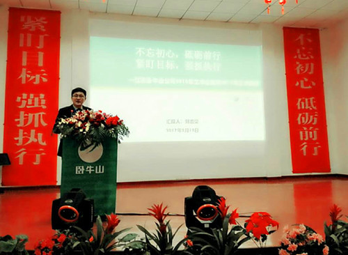 會(huì)議首先由臥牛山公司董事長(zhǎng)、總經(jīng)理劉志榮作“不忘初心、砥礪前行,緊盯目標(biāo)、強(qiáng)抓執(zhí)行”主題報(bào)告。他從銷售、工程管理、市場(chǎng)、人力資源、技術(shù)、財(cái)務(wù)風(fēng)險(xiǎn)等板塊全面深刻地回顧和分析了2016年公司整體經(jīng)營(yíng)情況及存在的問題,為各個(gè)板塊明確了2017年的工作方向及實(shí)施舉措。
