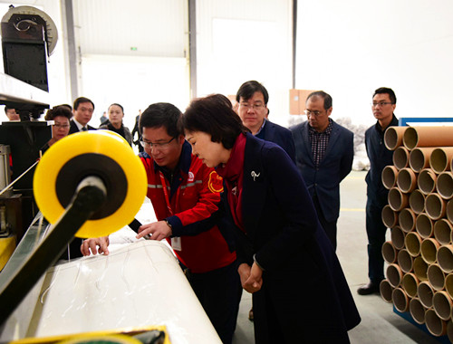 2月14日上午,湖南省委常委、統戰部長黃蘭香,省政協副主席楊維剛,省工商聯主席張健,岳陽市長劉和生,岳陽市委常委、統戰部長、副市長熊煒,云溪區區長余良勇等一行調研岳陽東方雨虹。岳陽東方雨虹廠長向鋒及各部門負責人接待調研組。