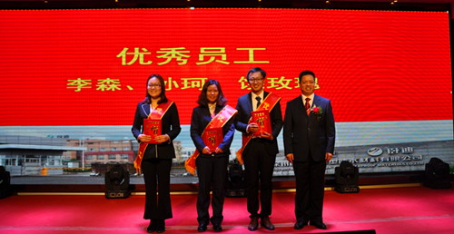 年會在雄壯的國歌和嘹亮的司歌聲中拉開帷幕,徐庭忠首先匯報了徐州臥牛山一年來取得的成績,并深入分析了工作過程中存在的不足,從安全生產、優化配置和提高產品質量等方面對全體員工提出了新標準和新要求。 副廠長胡國雄宣讀2016年度表彰決定,共設有優秀團隊、優秀管理、優秀員工、優秀工人等4個獎項,共計10人受到表彰。