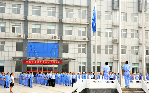 8月18日,天鼎豐迎來(lái)了5周年的生日,公司舉行了隆重的慶典活動(dòng),共同慶祝天鼎豐公司成立五周年。 公司300余名員工共同見(jiàn)證了這一重要時(shí)刻。慶典活動(dòng)于6點(diǎn)58分開(kāi)始,鳴禮炮、奏國(guó)歌、司歌,全體人員在國(guó)旗、司旗下行注目禮。隨后,天鼎豐董事長(zhǎng)聶松林發(fā)表五周年致詞,回顧了天鼎豐過(guò)去5年來(lái)的發(fā)展歷程:“五年來(lái),天鼎豐從一片荒蕪之地建設(shè)成為胎基布行業(yè)突出企業(yè),公司的團(tuán)隊(duì)建設(shè)、品牌建設(shè)、人力資源建設(shè)、市場(chǎng)外聯(lián)、社會(huì)責(zé)任等基礎(chǔ)工作都非常突出;設(shè)備管理、現(xiàn)場(chǎng)管理、成本管理、產(chǎn)品質(zhì)量等都走在了行業(yè)的前列。公司的飛速發(fā)展離不開(kāi)全體員工的辛勤工作,離不開(kāi)員工家屬的默默支持,更離不開(kāi)供應(yīng)商、客戶以及各級(jí)政府和社會(huì)各界朋友的鼎力相助,在此要表達(dá)對(duì)大家的衷心感謝,是大家的不懈努力,成就了今天的天鼎豐。”