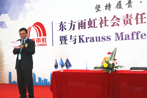 7月14日,在第十四屆防水展召開(kāi)之際,東方雨虹隆重舉行了2015年企業(yè)社會(huì)責(zé)任報(bào)告發(fā)布會(huì)暨與克勞斯瑪菲貝爾斯托夫公司的簽約儀式。公司在各界同仁的陪伴與監(jiān)督中走過(guò)了履責(zé)之路的第八個(gè)年頭,并在這一重要時(shí)刻進(jìn)行了引進(jìn)優(yōu)質(zhì)水平的TPO高分子卷材生產(chǎn)線的簽約。