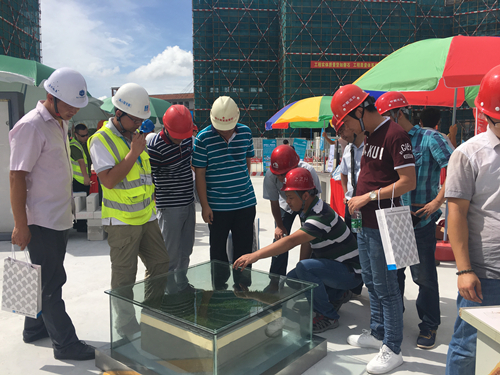 6月29日,廣州市南沙區2016年建筑施工“安全生產月”現場觀摩會在南沙區金茂灣三期工地舉行。廣東東方雨虹作為優質防水系統服務商,也受邀參與此次觀摩會,并現場展示了較為核心的防水系統。 本次現場觀摩活動以“強化安全發展觀念 提升全民安全素質”為主題,以樹立安全發展觀念,提升從業人員安全素質,維護建筑施工安全生產平穩局面為目標,邀請了南沙區建設系統、南沙區質監系統及各大施工單位相關領導與人員約四百余人到現場參觀。中國金茂控股集團與中建二局第三建筑工程有限公司皆十分重視防水工程,基于三方一直以來的良好合作和東方雨虹高質量的工程表現,特邀廣東東方雨虹在觀摩會現場進行防水系統的展示。