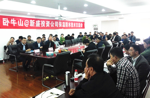 2016年4月9日上午,江蘇臥牛山公司走進(jìn)徐州新盛投資公司,舉辦了一場建筑外墻保溫、防水技術(shù)交流會,新盛投資公司相關(guān)部門、各分子公司及各項目部建設(shè)總包方、監(jiān)理單位共計60余人出席了本次交流會,共同探討建筑外墻保溫、防水施工的各項要求。