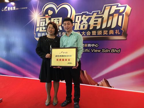 2016年3月10日,碧桂園2016年供應(yīng)商大會在馬來西亞碧桂園森林城市召開,此次大會主要評估2015年碧桂園供應(yīng)商服務(wù)質(zhì)量。據(jù)悉,碧桂園集團的供應(yīng)商多達15900余家,本次表彰的是其中優(yōu)秀的60余家。東方雨虹憑借優(yōu)質(zhì)的產(chǎn)品和出色的服務(wù)脫穎而出,榮獲2015年度碧桂園優(yōu)質(zhì)服務(wù)獎。