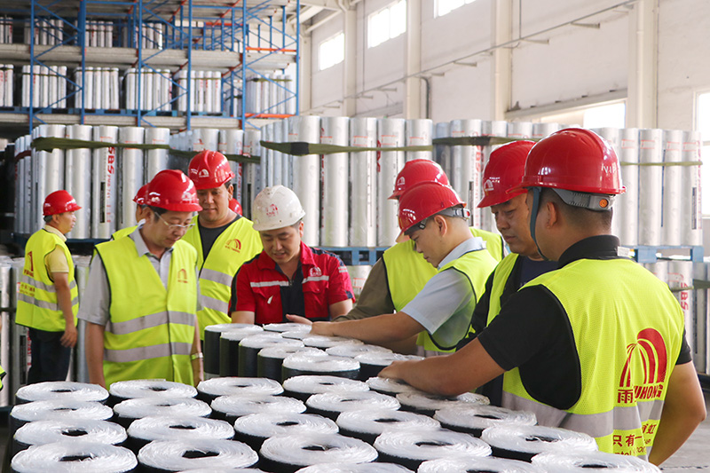 在東方雨虹唐山生產(chǎn)基地瀝青材料主任工藝師萬東永、東方雨虹工建集團渠道天津區(qū)域經(jīng)理李雪鵬的帶領(lǐng)下,合伙人先后參觀了唐山東方雨虹的卷材生產(chǎn)車間,涂料生產(chǎn)車間和質(zhì)量檢測中心,從原材料進廠質(zhì)量把控、產(chǎn)品的生產(chǎn)過程、成品出廠的層層質(zhì)量檢測等生產(chǎn)一線的實際情況有了全面認(rèn)知。