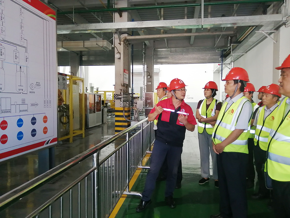 期間,濮陽東方雨虹廠長靳曦介紹了東方雨虹目前的生產布局、產品優勢、標準化施工、建設進度等情況。考察團參觀了生產基地的聚氨酯車間、水性涂料及砂漿車間,詳細了解了濮陽東方雨虹“年產10萬噸單組分聚氨酯防水涂料重大科技專項”的主要研發內容、技術創新點、項目進展、成果轉化等情況。