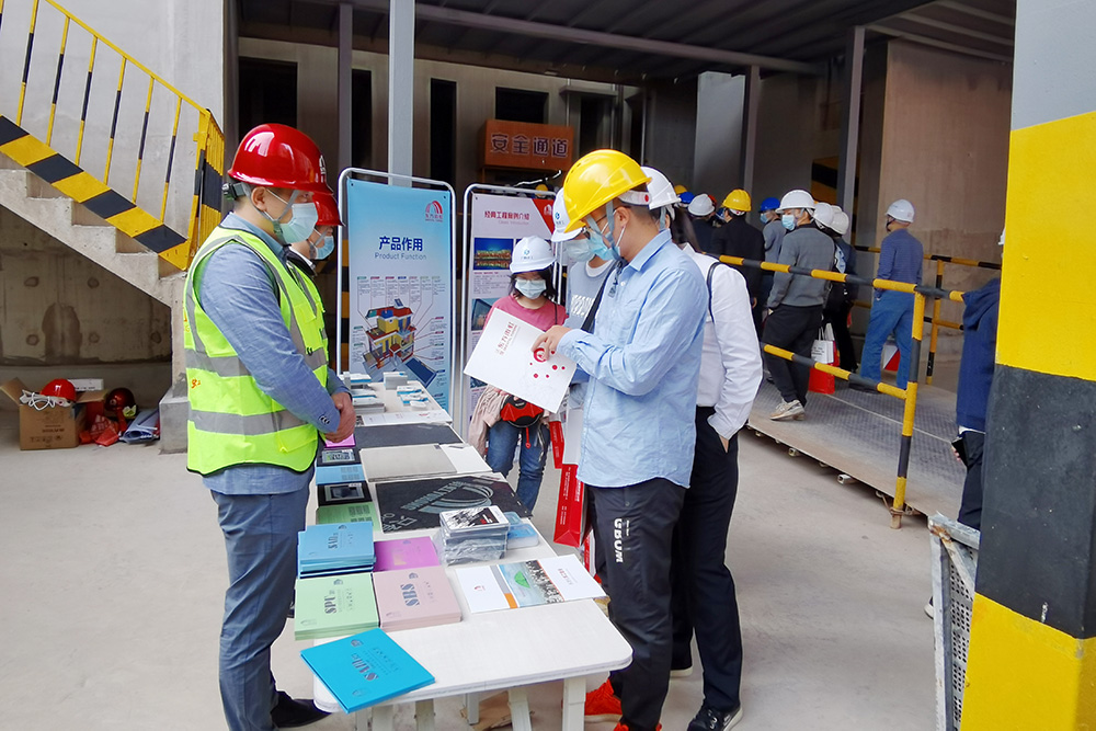 會上,東方雨虹設立展位,向與會人員介紹了地下室底板預鋪反粘系統,非固化橡膠瀝青防水涂料復合瀝青類卷材系統,FD外墻內保溫復合系統等,并現場展示實體樣板間、模型,普及講解建筑建材系統解決方案的施工工藝及安全操作注意事項。