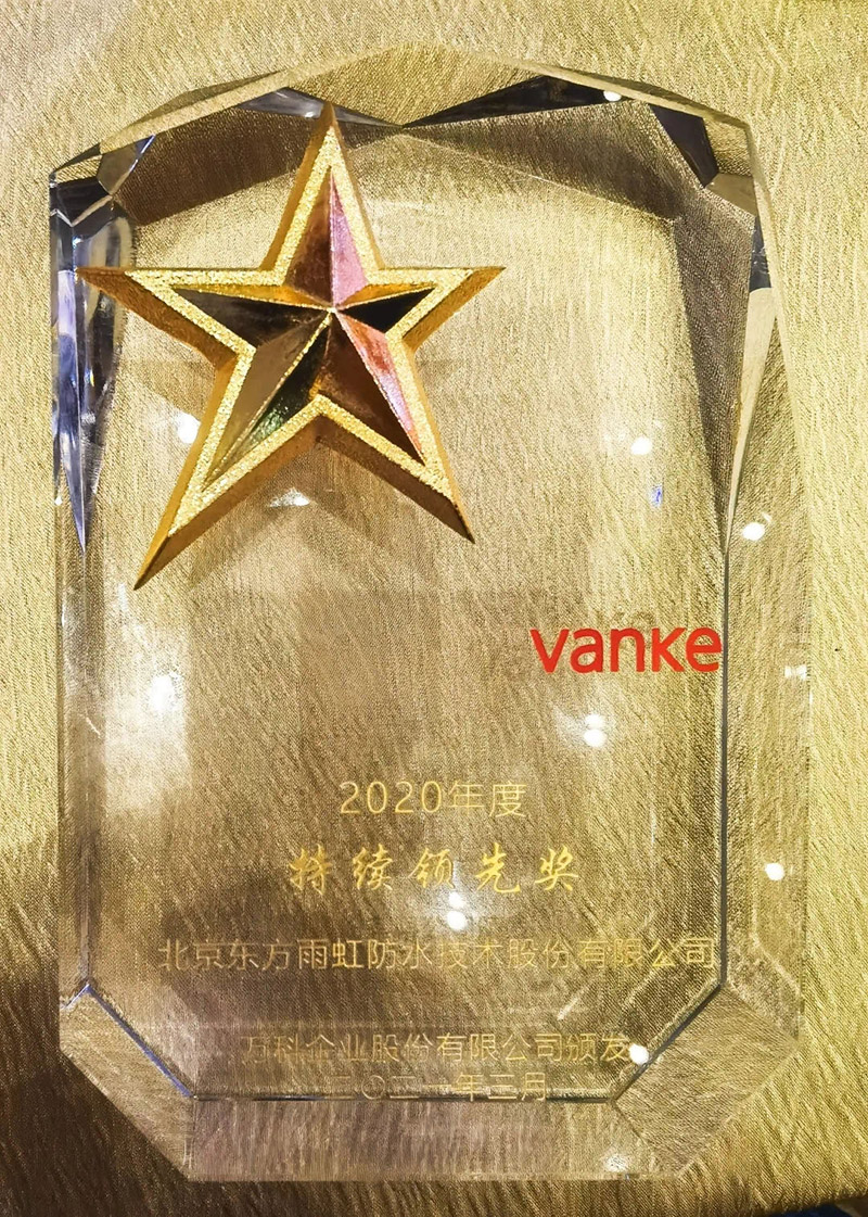 東方雨虹與萬科集團自2009年達成戰略合作以來,始終踐行質量先行、產品創新,秉持服務至上理念,精益求精,持續提供高品質的建筑建材系統服務。此次獲評“2020年度持續領先獎”,體現了東方雨虹在技術優勢、產品品質、工程質量和系統服務等方面得到了萬科集團的充分認可與信任。