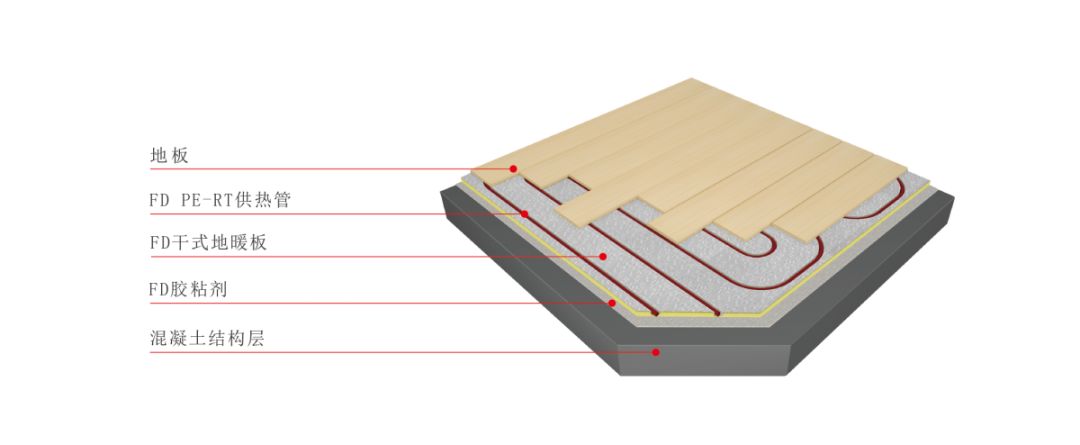 相對于傳統濕式地暖而言,無需地暖回填層,增加室內凈高,減輕了荷載的地暖形式。干式地暖上部沒有厚重的豆石混凝土回填層,直接為飾面層,所以室內升溫迅速。
